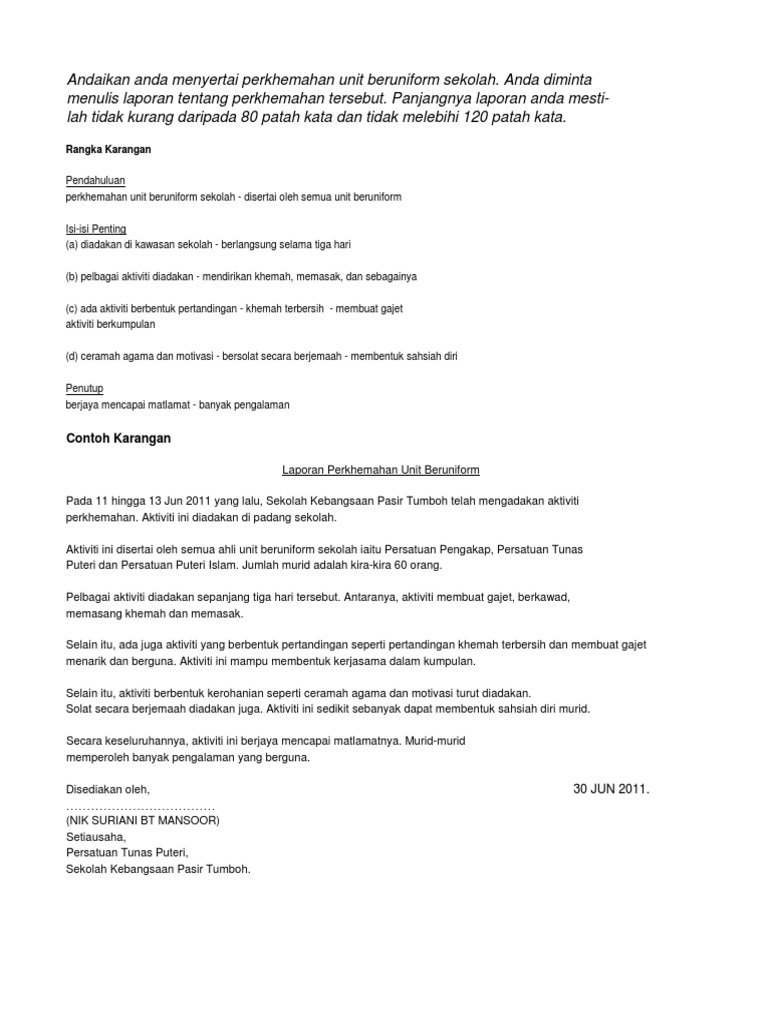 Karangan Upsr Laporan Perkhemahan Pdf